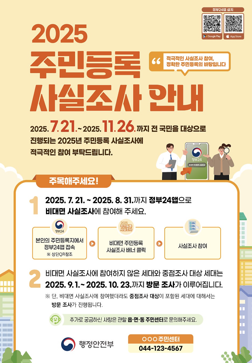 실제 거주지가 주민등록상 주소와 다르거나, 미신고 상태일 경우 각종 지원, 비자 갱신, 공공서비스 이용에 불이익이 발생할 수 있으니 반드시 참여해야 합니다.