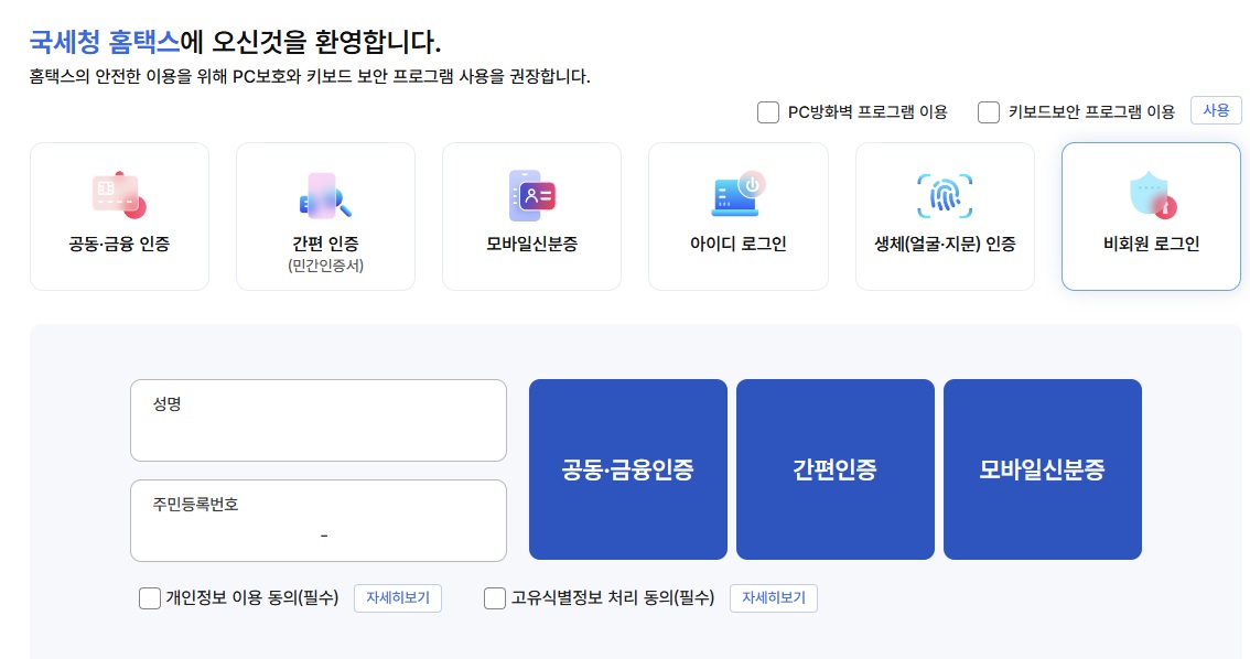 프리랜서 홈택스 간소화서비스 이용 시 주의사항
